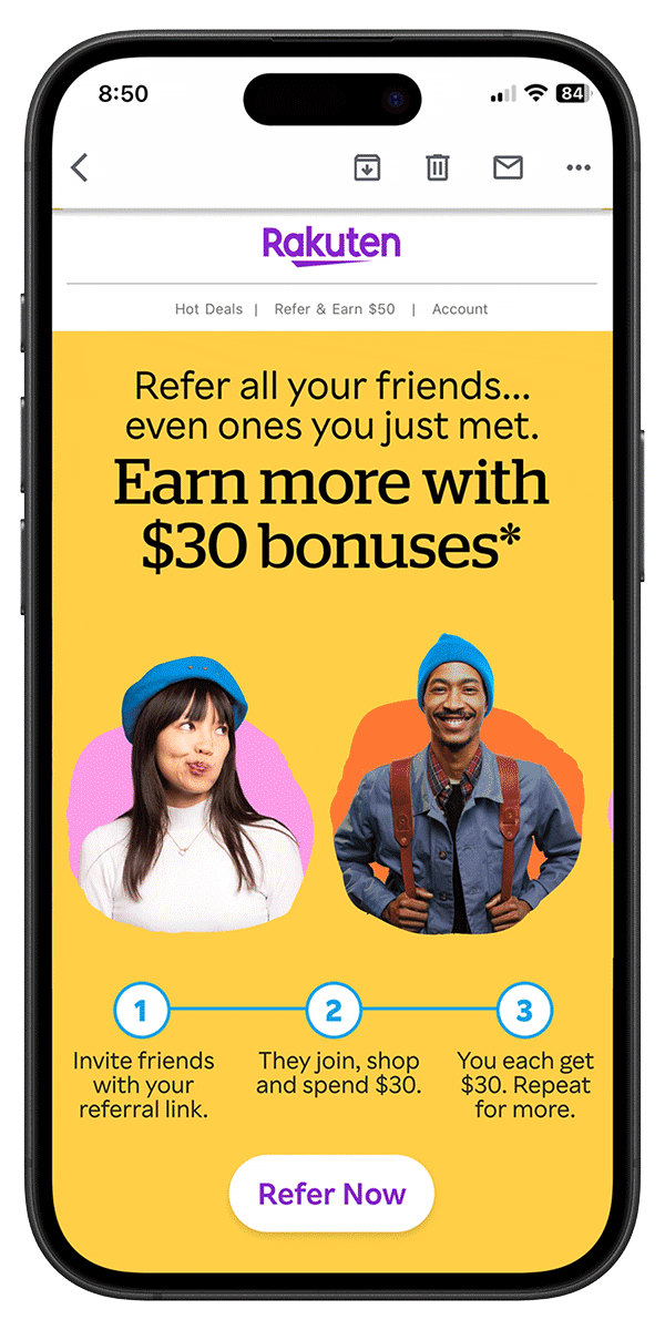 Rakuten’s Refer-A-Friend program turns loyal members into advocates, driving organic growth through Cash Back rewards for referrals.
