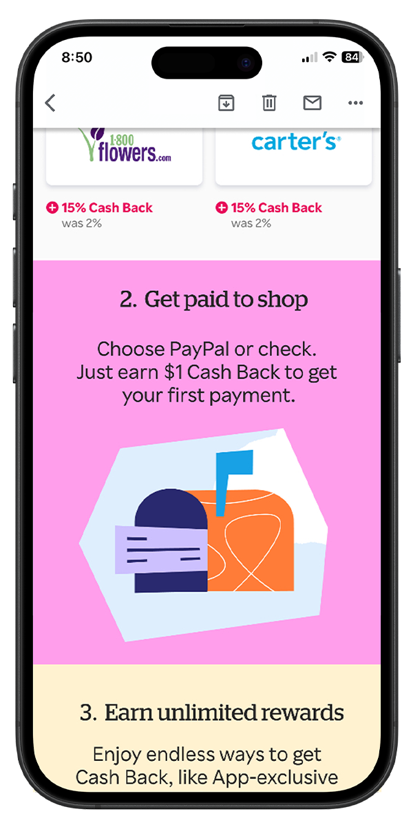 We designed the evergreen creative system for this program with bright, punchy visuals and clear messaging to boost engagement—resulting in a 27% increase in sign-ups and making RAF Rakuten’s largest acquisition channel, responsible for over 30% of all first-time buyers.